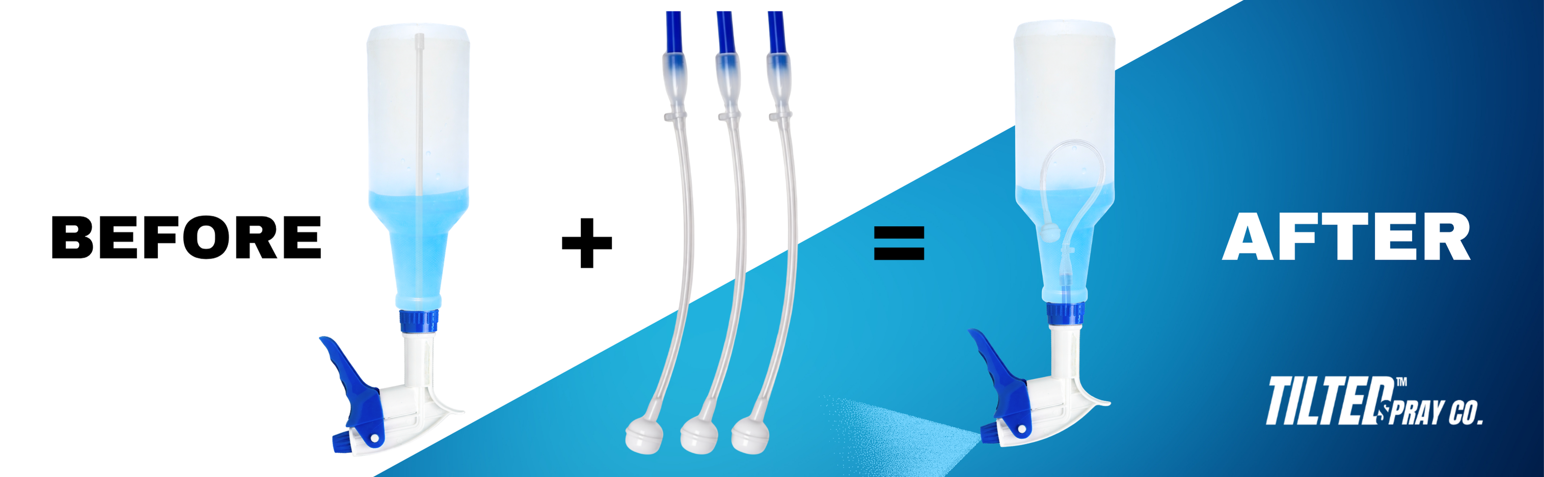 The TILTED™ 360° Spray Bottle Kit is a complete, ready-to-use spray system Spray at any angle, to the very last drop!
