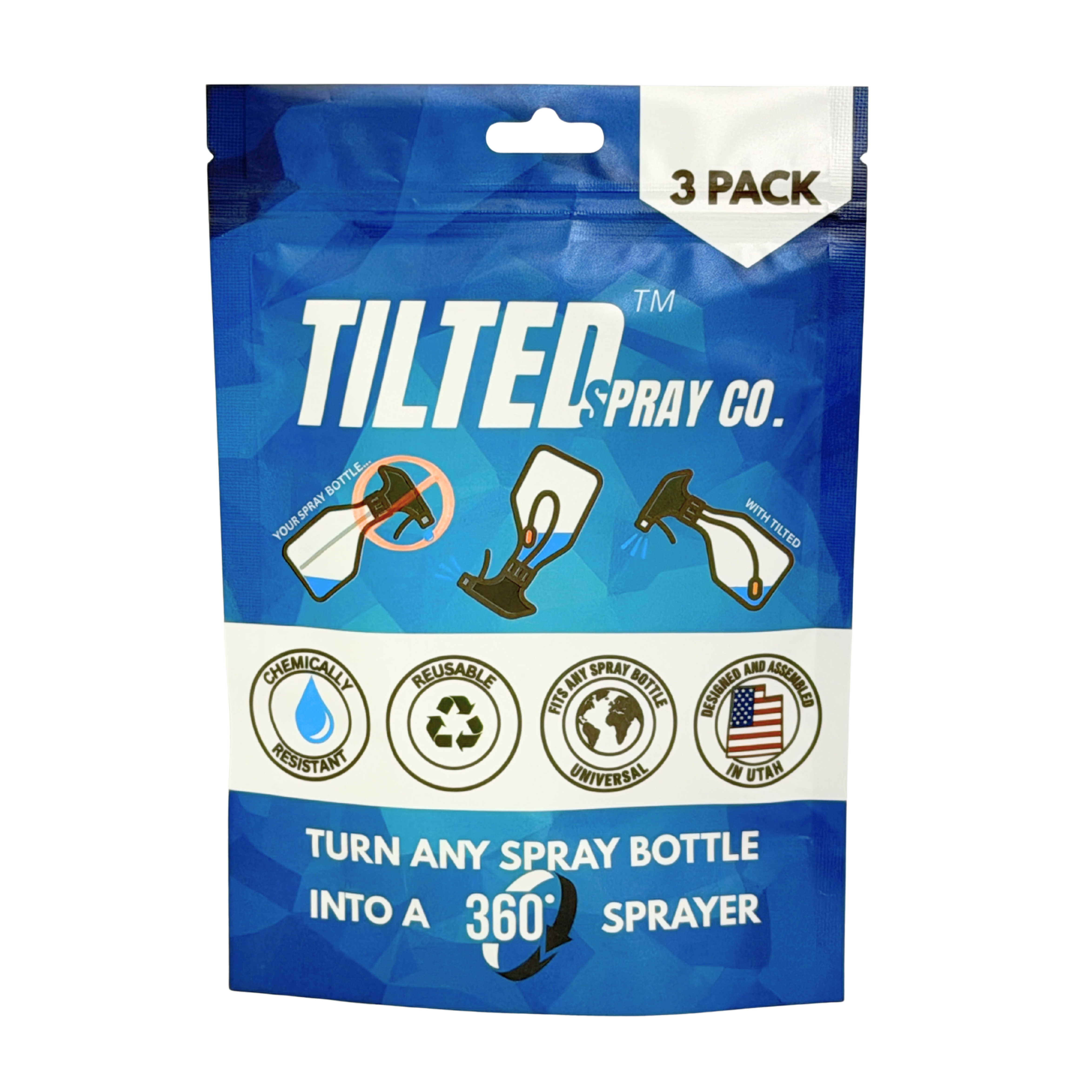 Tilted Attaches to any Spray Bottle and Turns it into a 360 Sprayer. Now you can get every last drop regardless of the angle. A simple Idea that actually works!