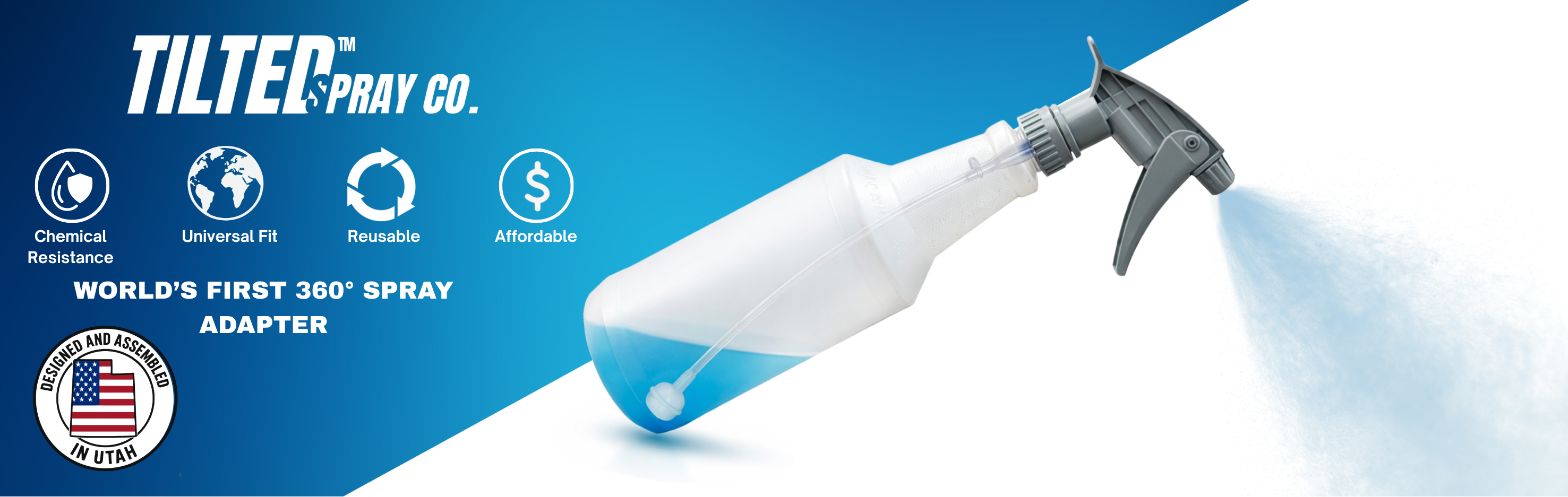 Tilted Attaches to any Spray Bottle and Turns it into a 360 Sprayer. Now you can get every last drop regardless of the angle. A simple Idea that actually works!